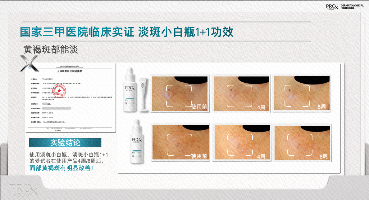 这一系列的临床实证结果,有力地证明了OLAY PROX实验室线全新升级产品的强大实力。用科学的力量让淡斑和抗皱不再是遥不可及的护肤口号,而能给消费者带来可感可知的肌肤变化。
